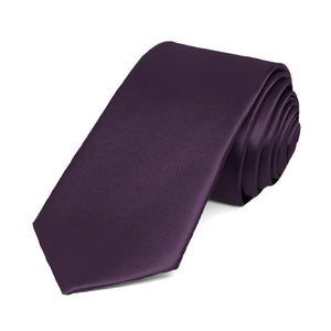Eggplant Purple Slim Solid Color Necktie, 2.5" Width