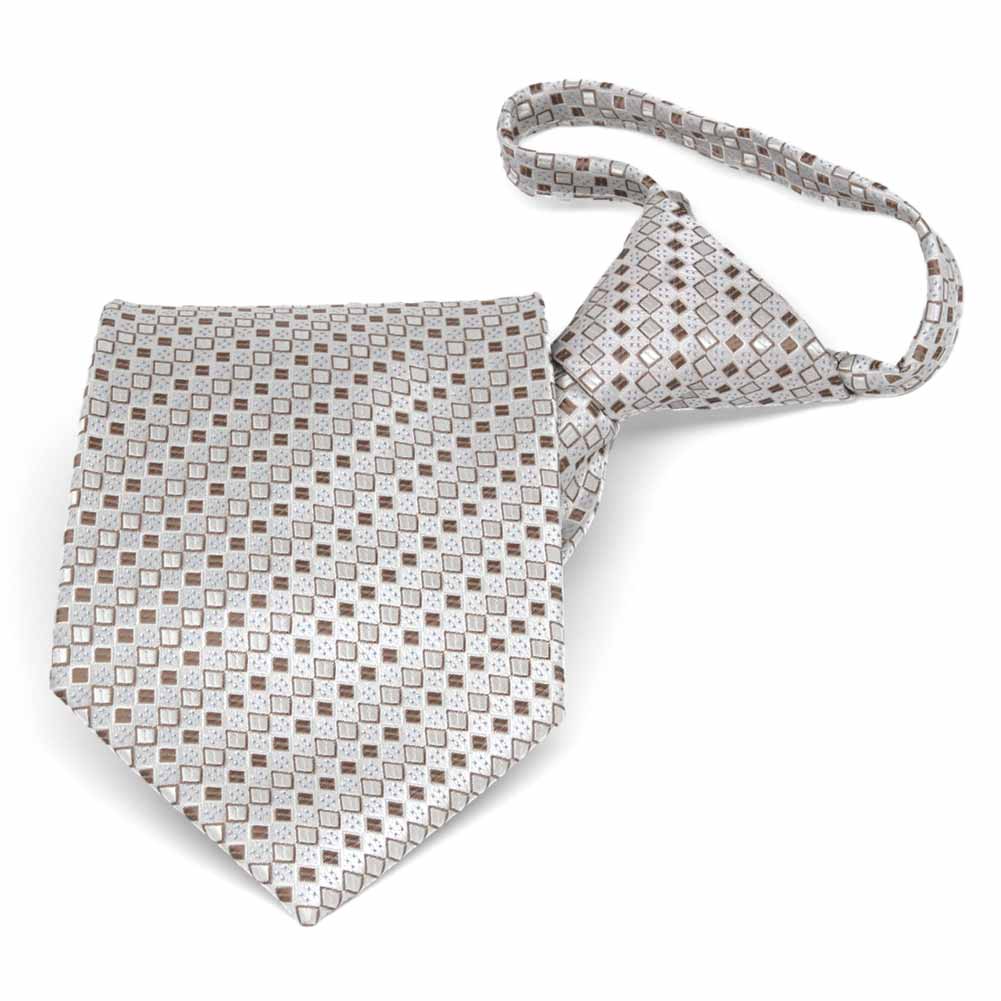 Oatmeal Brown Marie Square Pattern Zipper Tie