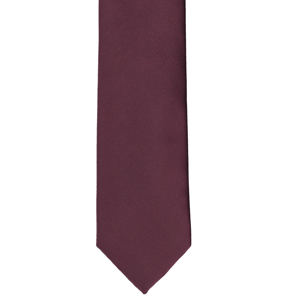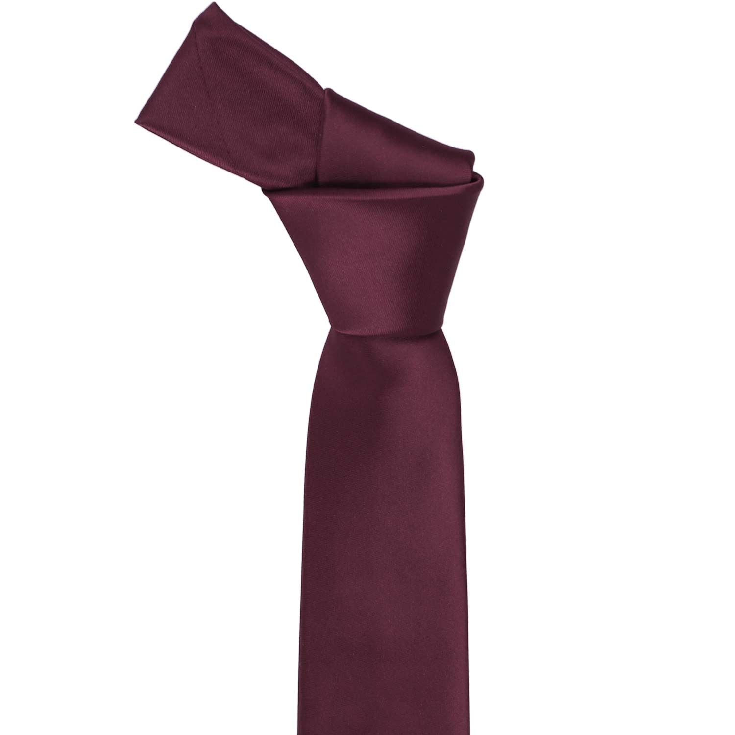 This wine-colored slim tie will add a modern touch to your wedding day. The color is one of our most popular for groom and groomsmen attire. You might think of fall and winter weddings with this dark burgundy hue, but our customers are pairing it with lighter shades, like subtle pinks, for summer weddings, too. Talk about versatility! This tie will match most suit colors. Complete his dressed up ensemble with a matching pocket square or lapel pin (both sold separately).