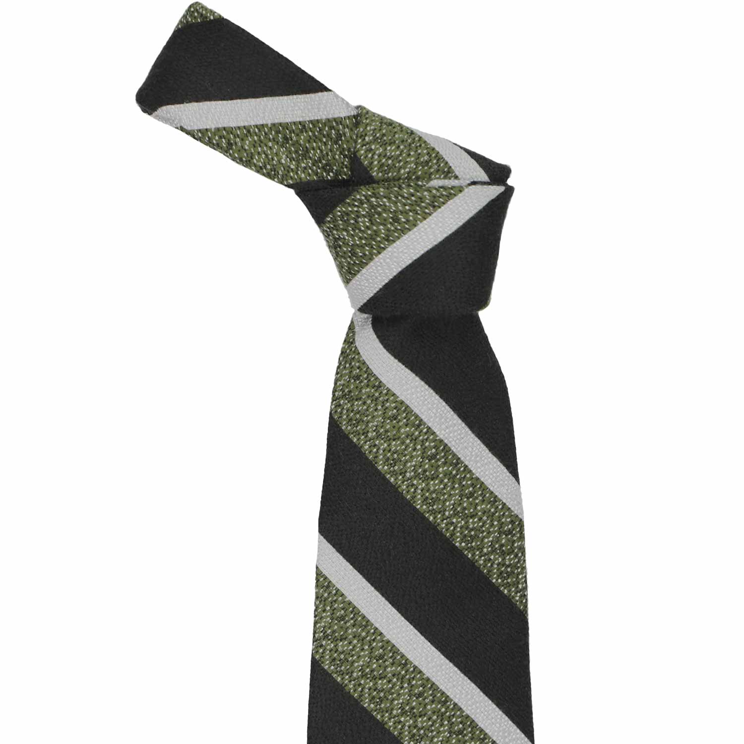 From that big meeting to casual Friday, this striped tie will make a statement. The stripes are large but not too bold thanks to the subdued colors. (You’ll really like the speckled black and gray design in the green stripe.) It will look great with your favorite suit or khakis for an effortless office look.