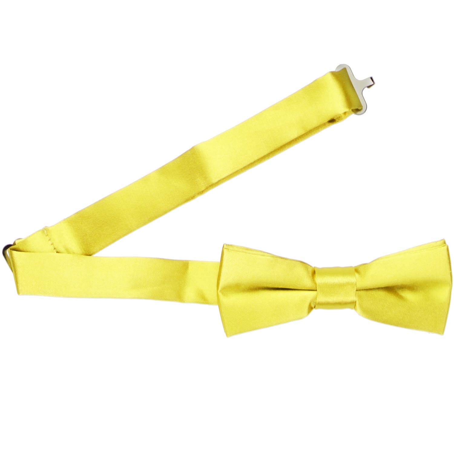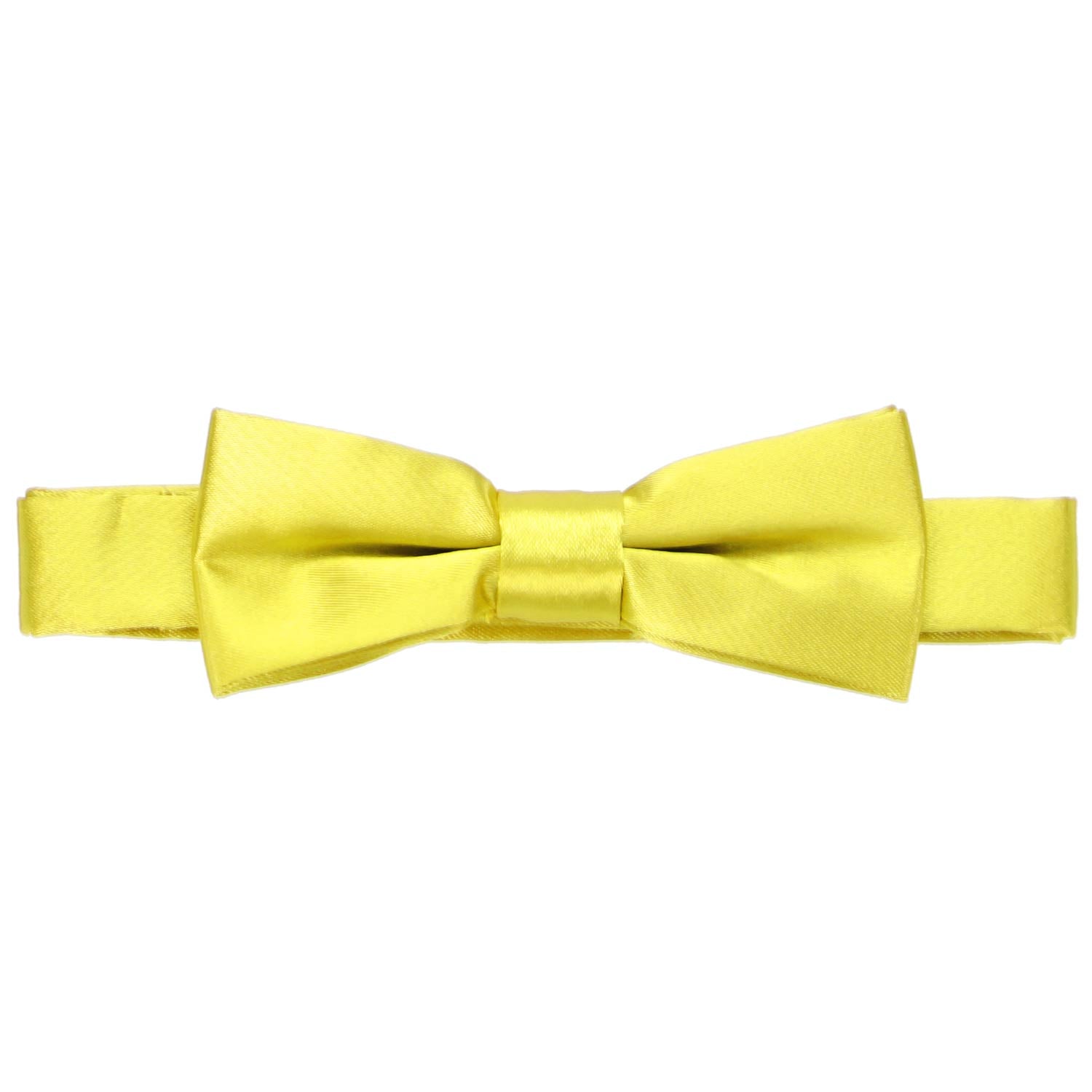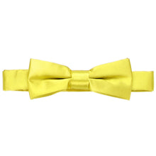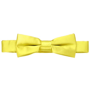 A charming boys' daffodil yellow bow tie sized just right for your little guy. The bow tie is pre-tied and features a safe and easy-to-use hook-and-eye closure. Measuring 4-inches across and 1.5-inches tall, this bow tie is sized for most boys from baby to 10-years old.