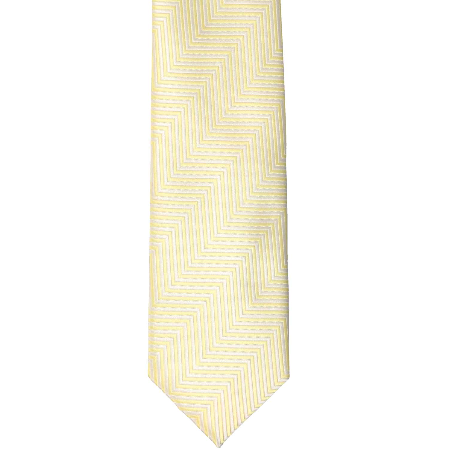 With its modern design and soft yellow hue, this chevron-patterned tie is a perfect pick for your wedding day. The muted yellow tone keeps the zigzag pattern subtle yet more dynamic than a plain tie. It pairs effortlessly with any suit color, making it a foolproof choice. Thanks to its versatile style and trendy slim cut, this tie is sure to become a go-to favorite well beyond your big day.