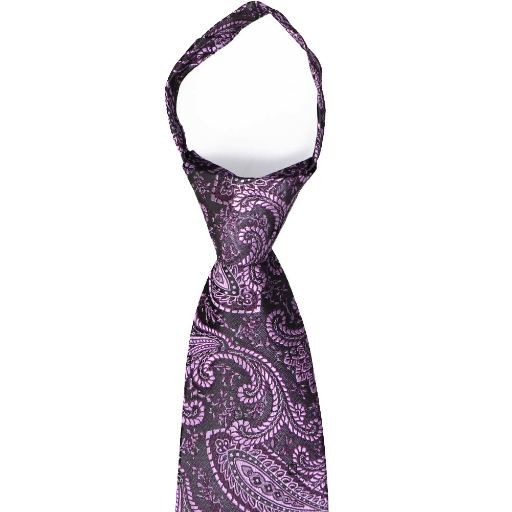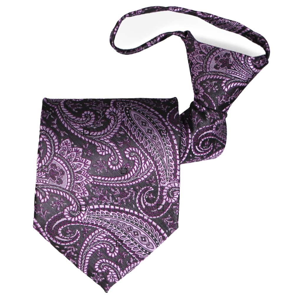 Make wedding day prep a breeze with this eggplant purple paisley zipper tie—a must-have for any fall wedding! The large yet timeless pattern features multiple shades of purple, making it the perfect complement to any dusty purple wedding theme. Plus, with its pre-tied zipper design, your groomsmen can get ready with ease—no struggling with knots required! This tie pairs effortlessly with black, gray, or navy blue suits, ensuring a polished look for the big day. Don’t forget to complete the ensemble with the matching pocket squares (sold separately).