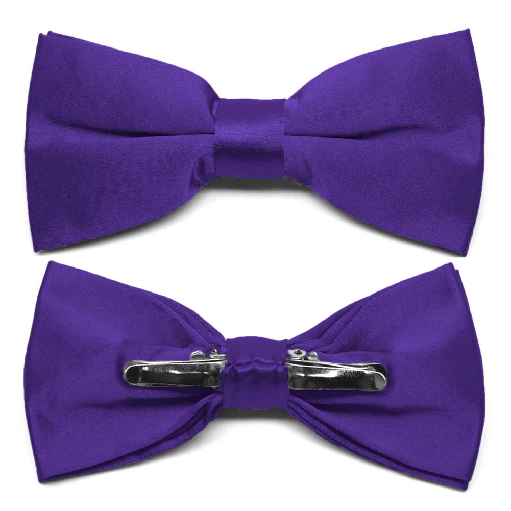 This amethyst purple clip-on bow tie is ready to wear, whether you’re outfitting a group or getting ready for a formal event. It stays securely in place thanks to two heavyweight metal clips on the backside. (Detailed instructions on using our clip-on bow ties are provided below.) When you’re wearing a jacket, complete your look with the matching pocket square.