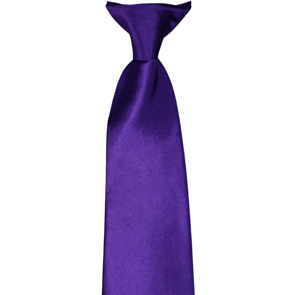 This amethyst purple clip-on tie features a pre-tied knot for easy use. It is made of durable, 100% polyester with a satin finish and available in two lengths for men, women and teens. This tie is popular for individual use, but the pre-tied style makes it a favorite for large group or staff attire.