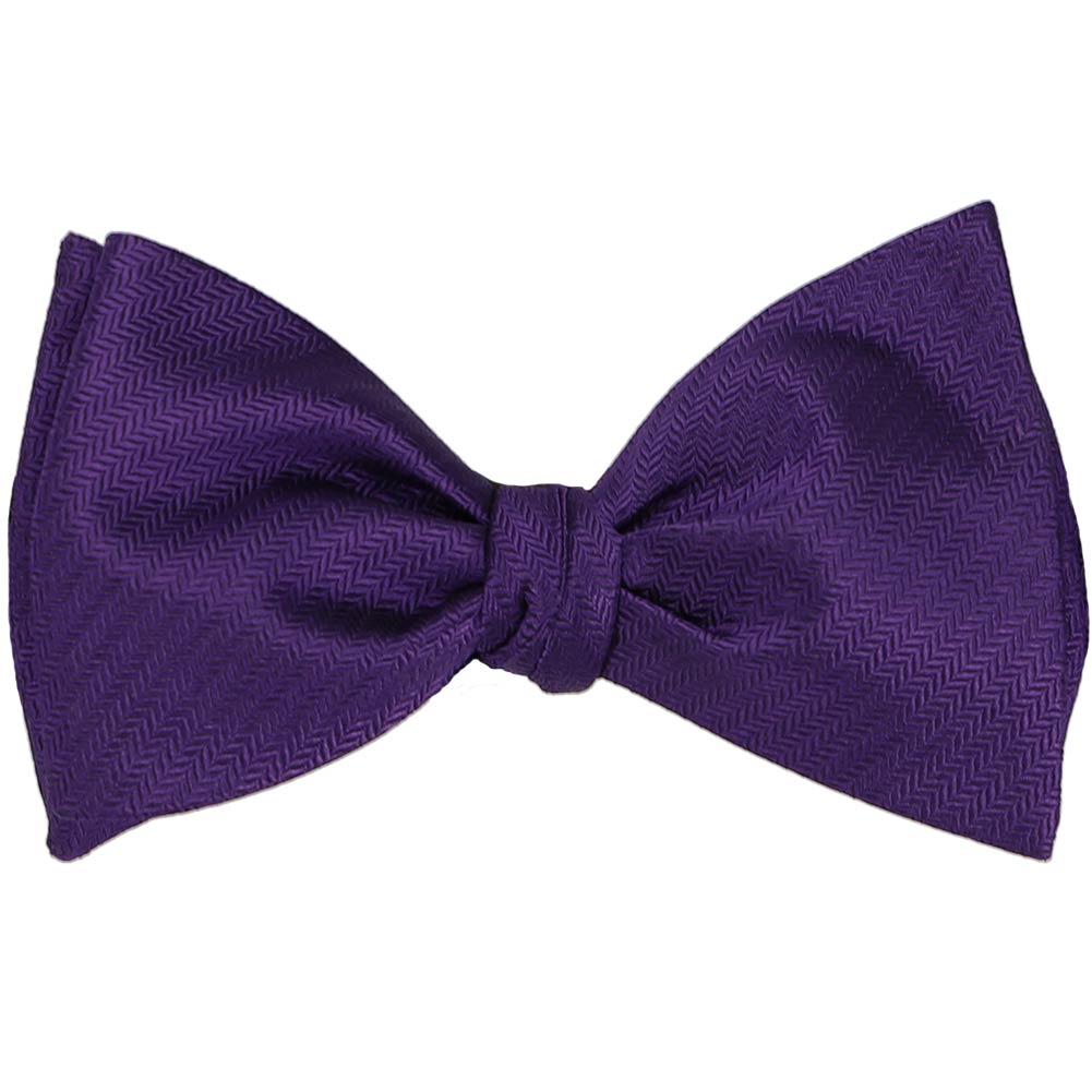 Add rich style to your look with this amethyst purple herringbone bow tie. It's a self-tie style so you're tying it yourself. The pattern is small and subtle and the tone-on-tone design makes it easy to match. (Wear it like you would a solid color tie.) There are matching pocket squares sold separately, or try pairing it with a bolder patterned pocket square.