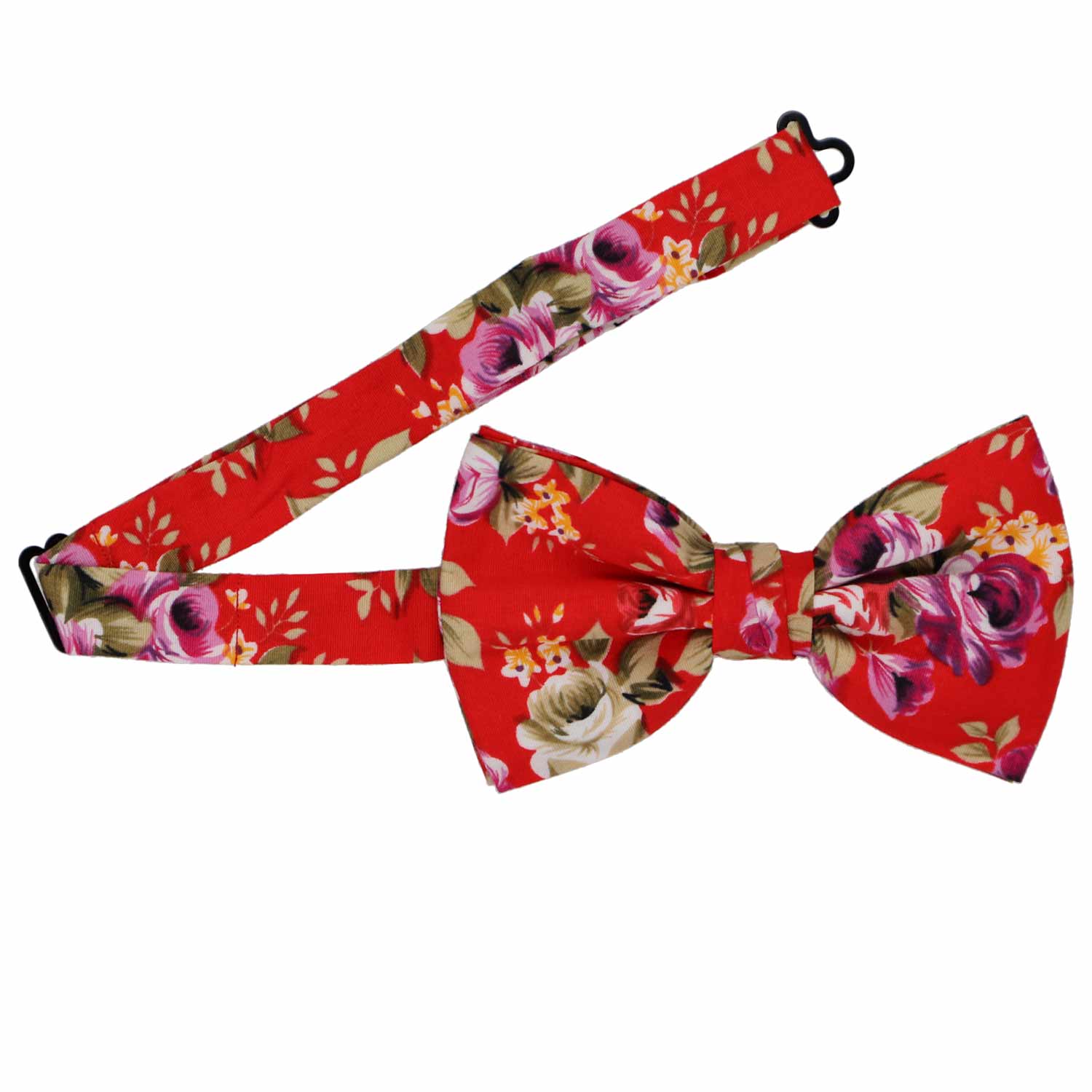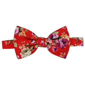 This red bow tie just might be our boldest floral pattern. The colors are vivid, the print is bold and the combination is simply striking. Wear it on your wedding day or casually to the office.