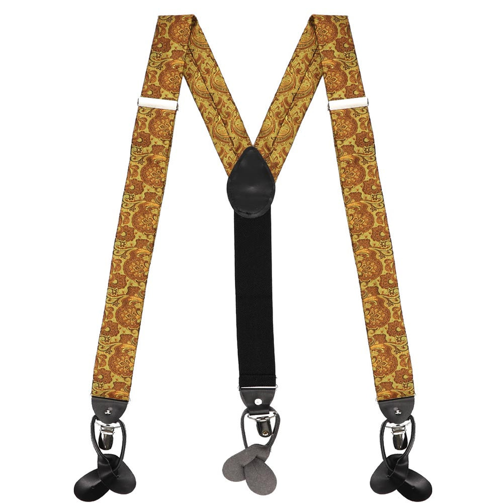 Look and feel like royalty when you wear these antique gold paisley suspenders for your next formal event. There will be no denying your penchant for fashion-forward style. We like these suspenders with a navy blue suit, but they can pair with any color suit or formalwear you choose.