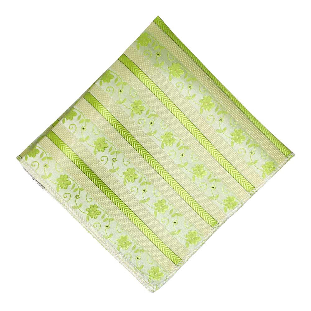 Brighten up your wardrobe with this apple green pocket square, featuring an elegant floral vine and textured stripe design. With its intricate details and refreshing hue, this accessory is the perfect addition to your spring and summer fashion lineup. Whether you're dressing for Easter celebrations, a wedding, or simply refreshing your office attire, this pocket square adds a polished yet lively touch. Its light, versatile color pairs effortlessly with gray suits and warm-weather ensembles, making it a must-have for any well-dressed gentleman.