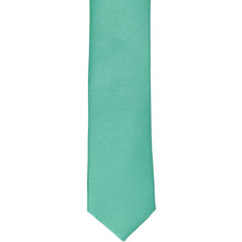 This aquamarine skinny tie is trimmed to our skinniest, 2-inch width. We like to see this one worn casually with jeans and a collared shirt, but it can be dressed up with a fitted suit for groomsmen attire. (This tie is really versatile and will coordinate with most suit colors.)