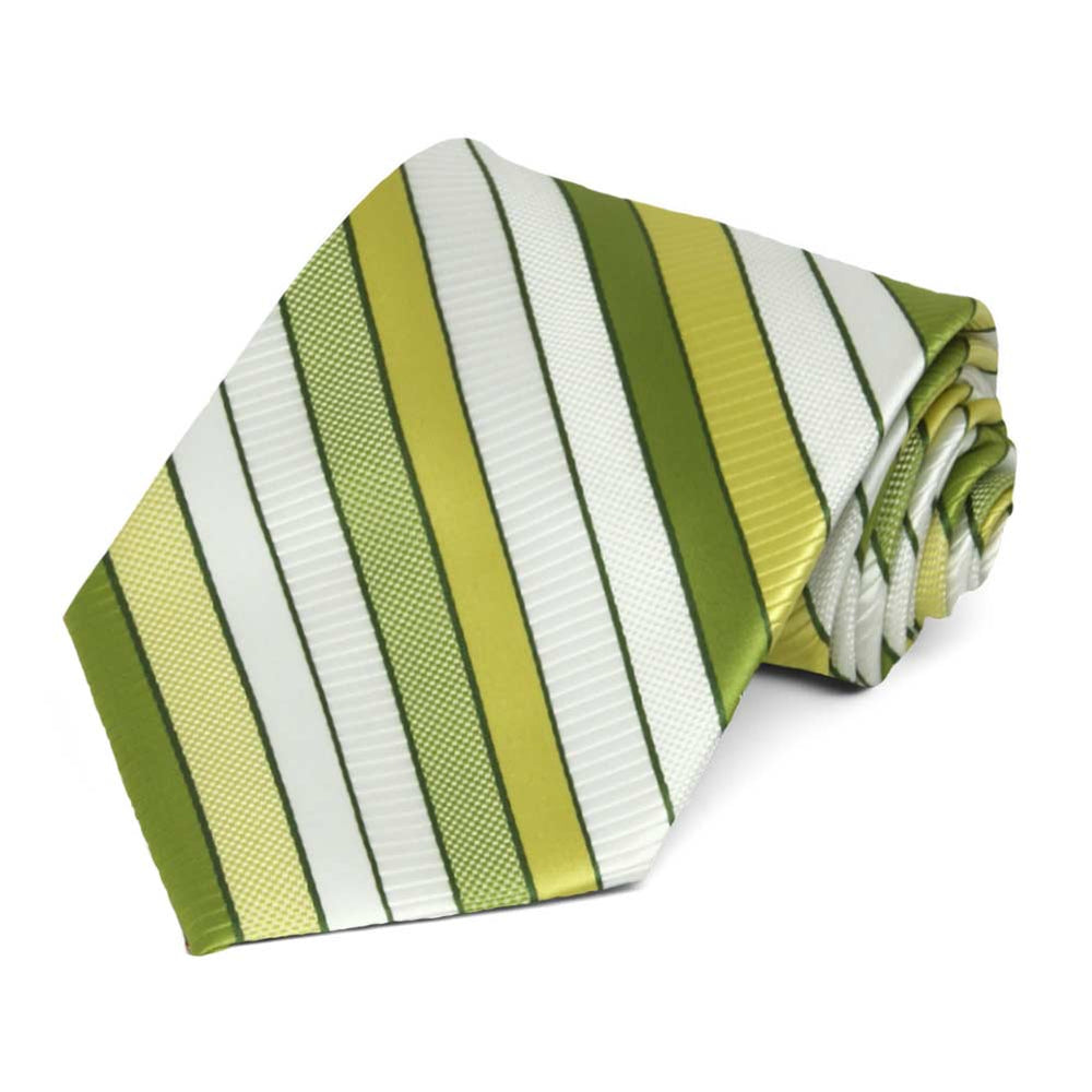 Add a refreshing pop of color to your daily wardrobe with this asparagus green striped extra long tie, designed with big and/or tall men in mind. The classic stripes and earthy tones make it a perfect choice for everyday office wear. Versatile and stylish, it pairs beautifully with a tan suit for a business look or khakis for a more relaxed feel. For a complete ensemble, consider adding the matching pocket square (sold separately) for those special occasions.