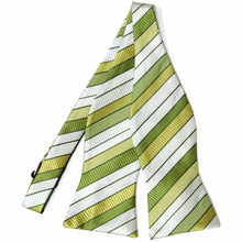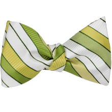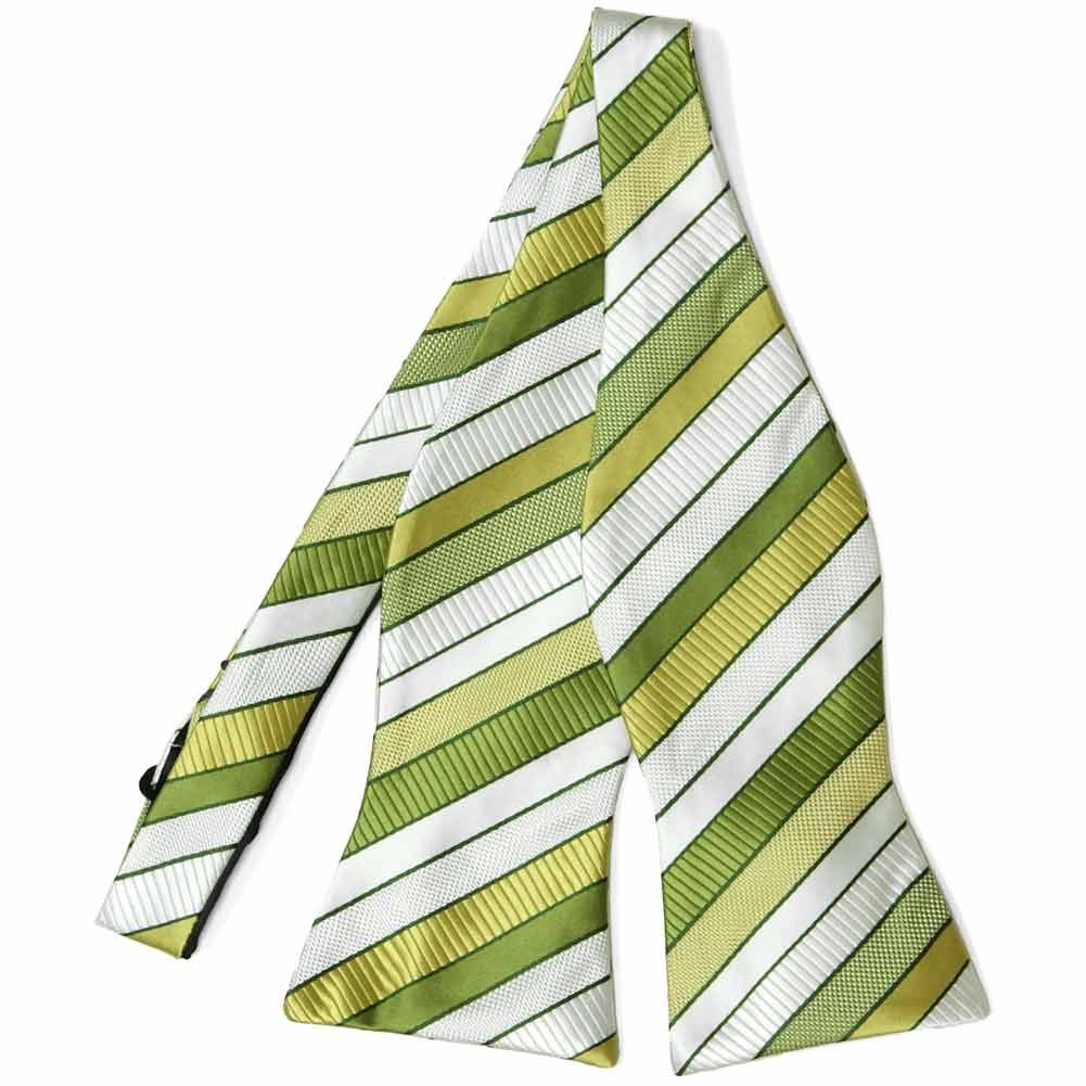 Welcome the light and bright hues of the season with this asparagus green striped self-tie bow tie! Its fresh, vibrant hue and textured stripe design bring a perfect blend of classic style and seasonal charm. Ideal for spring weddings, garden parties, or a polished everyday look, this bow tie adds a subtle pop of color without overpowering your outfit. The self-tie style offers a personalized fit, making it easy to tie your perfect bow. Pair it with a crisp white shirt and a light gray or tan suit for a fresh, spring-ready ensemble.
