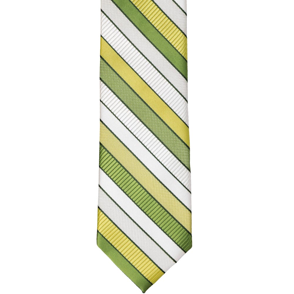Embrace the season with this fresh asparagus green slim striped necktie. The classic stripe design and earthy tones make it a perfect pick for your spring office wardrobe. Whether you pair it with a tan suit for a polished business look or khakis for a more laid-back vibe, this tie brings effortless style to any outfit. Complete the ensemble with the matching pocket square, sold separately, for those special occasions.