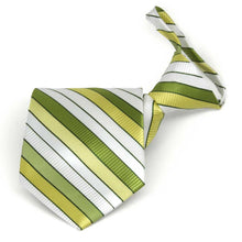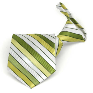 Refresh your wardrobe with this asparagus green striped zipper tie, designed for effortless style and convenience. The classic stripe pattern and earthy tones make it a go-to accessory for everyday office wear. Whether you're dressing up in a tan suit for a sharp business look or keeping it relaxed with khakis, this versatile tie has you covered. Plus, with its easy zipper closure, you’ll get a perfect knot in seconds—no tying required! For formal occasions, complete the look with the matching pocket square (sold separately).