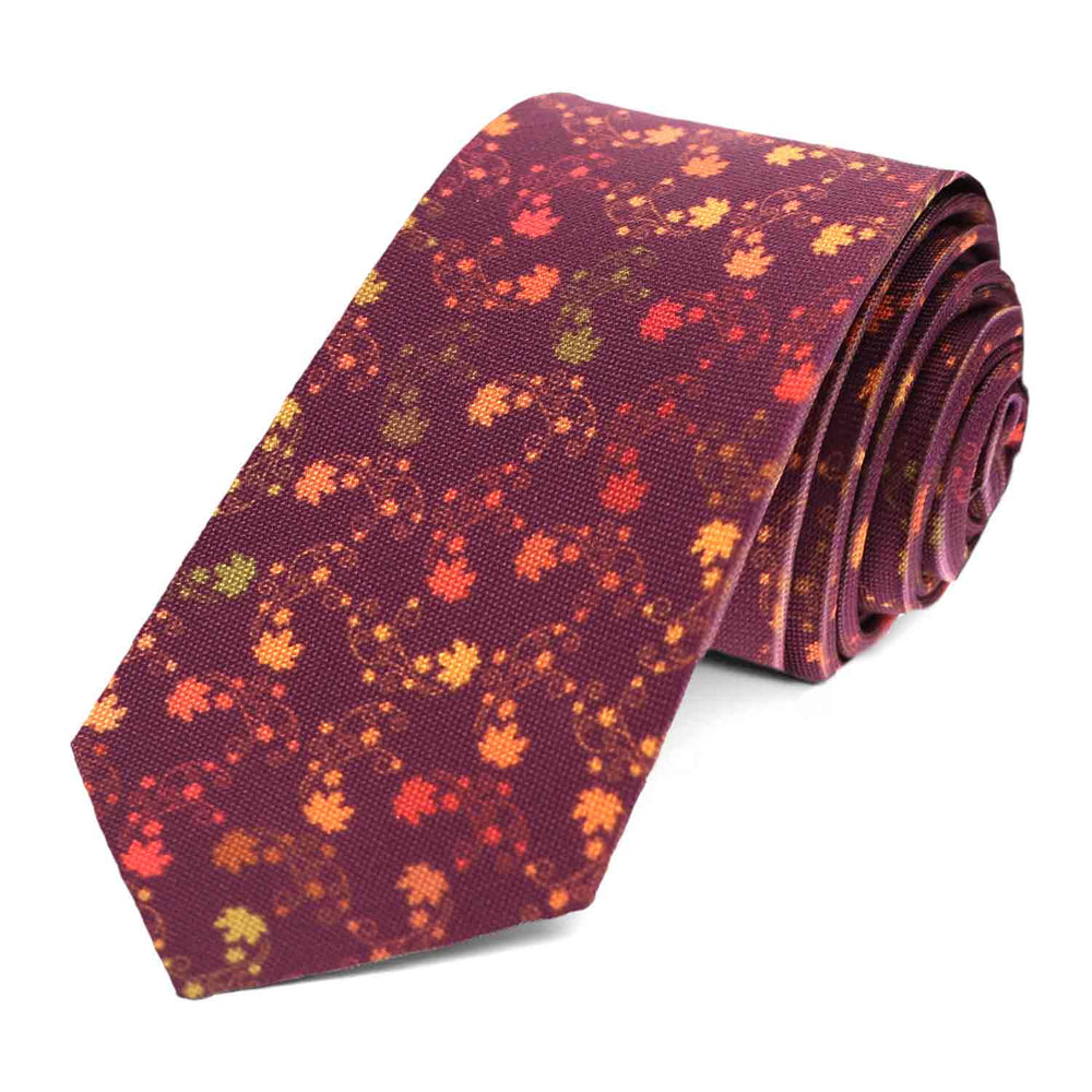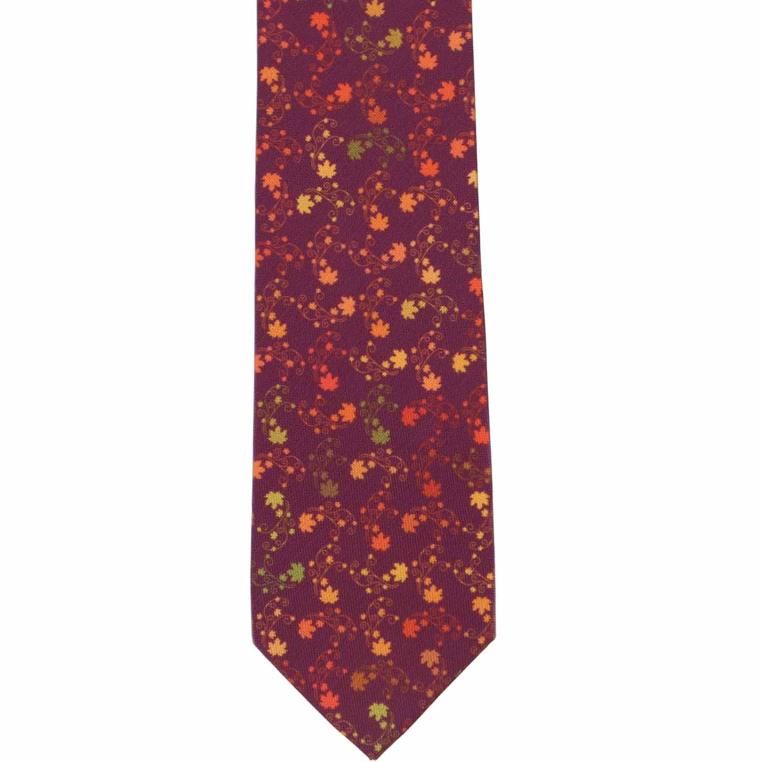 Your favorite season is here (autumn!) and it's time to dress the part. This slim novelty tie features a lattice-like pattern of falling leaves, making it a stylish ode to the season. It pairs perfectly with a crisp button down, corduroys and apple cider.