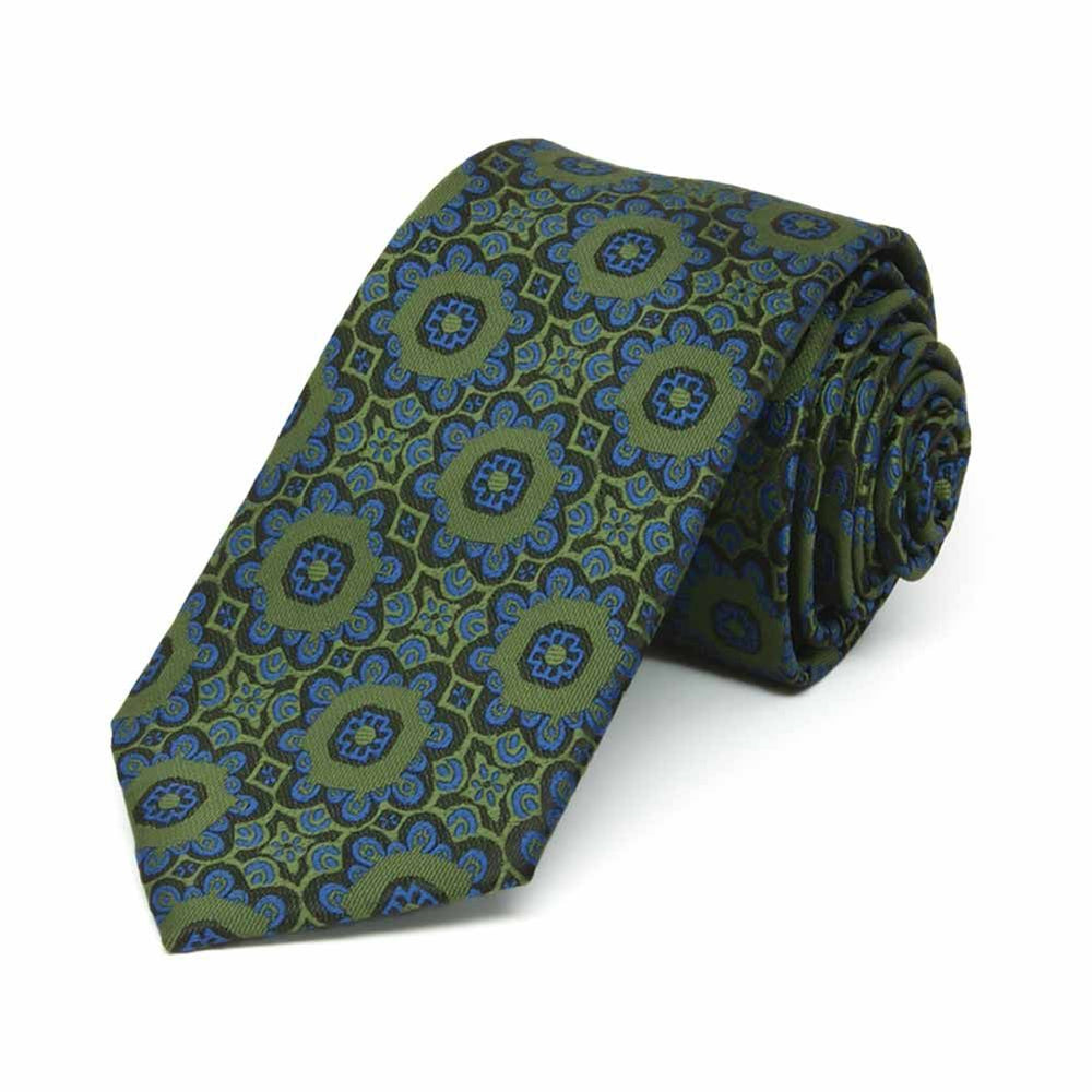 Your style will be a little modern and a little retro with this groovy avocado green slim necktie in an abstract floral print. It's perfect for adding a subtle hint of color to a navy blue suit or a more casual shirt and slacks combo. Wear this one year round and watch the complements roll in!