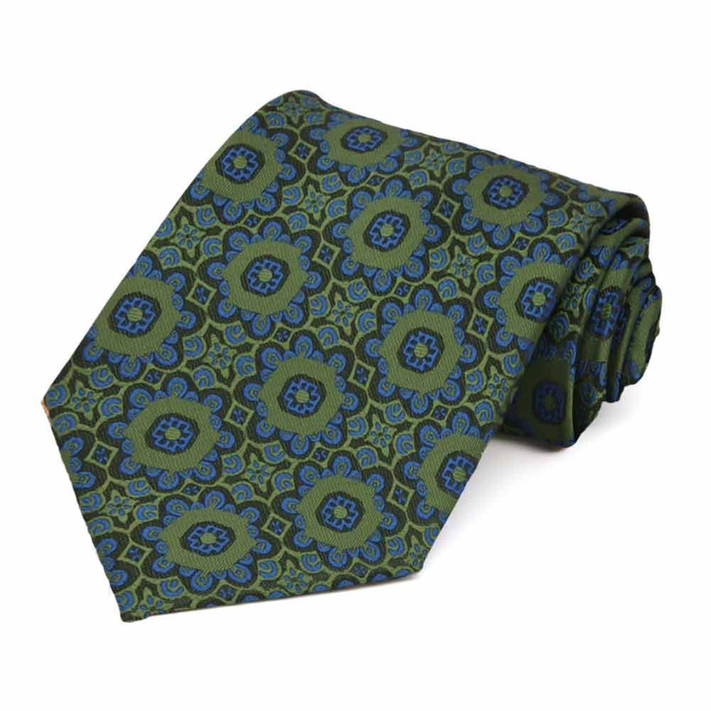 Add a little retro flair to your wardrobe with this groovy, avocado green necktie in an abstract floral print. You'll love the subtle hint of color this tie adds to a navy blue suit or shirt and slacks combo. Suitable for year-round wear. Get ready for the office to start talking about this cool tie.