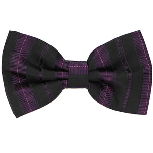 They say the details make the man, and in this case the details make the bow tie. You'll love the rich colors and woven texture of this pre-tied bow tie. The black and eggplant purple stripes lend themselves to darker suits and colder weather wear. Wear it for your wedding day and many occasions afterward!