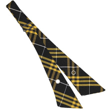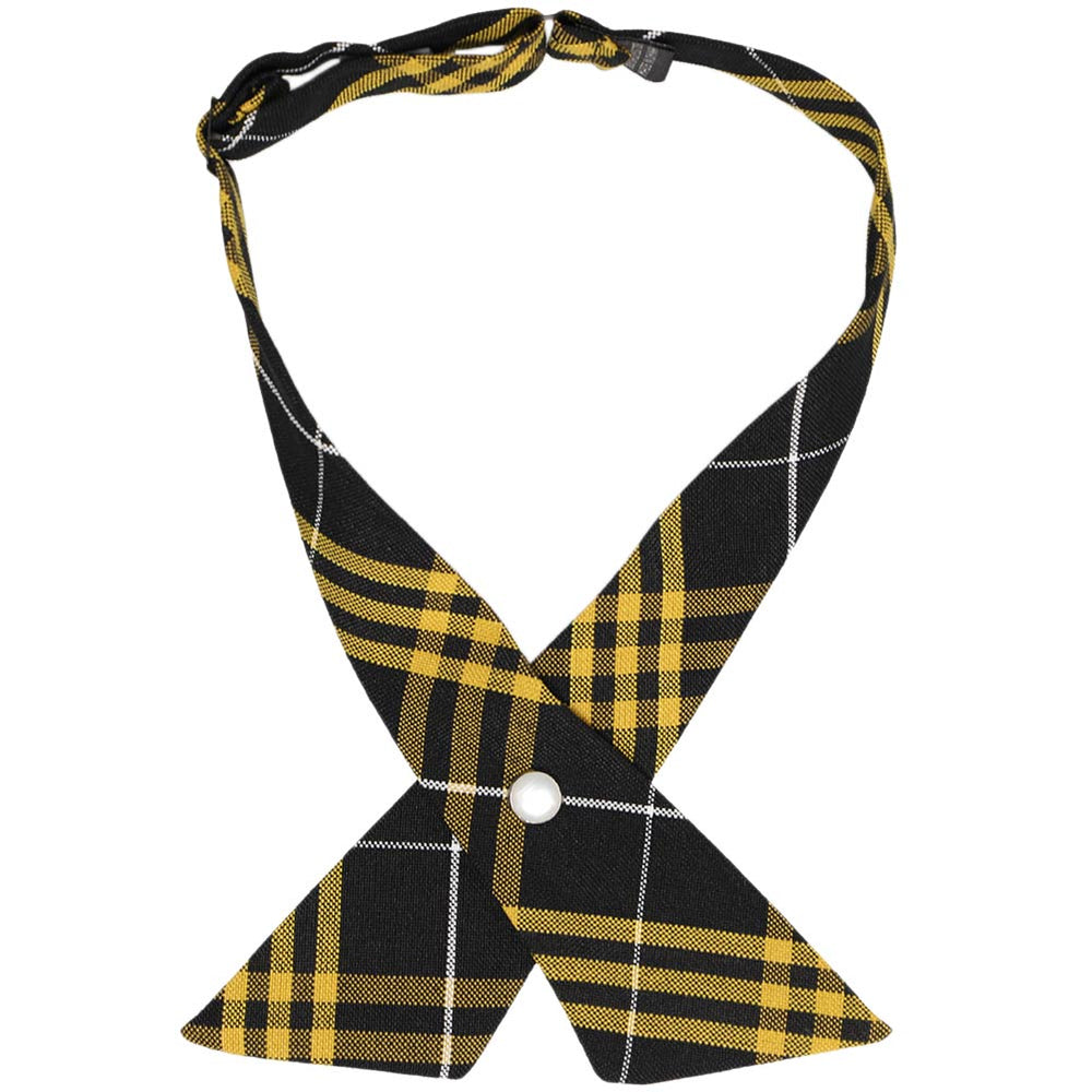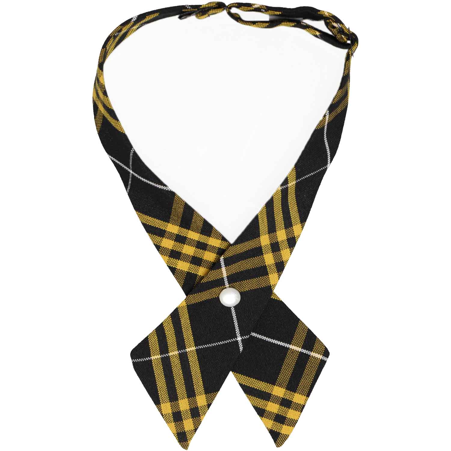 Go back to school in this black and gold plaid crossover tie. This classic uniform pattern is designed to match school colors. It's easy to mix tie styles among a group of K-12 students with the matching neckties, pre-tied ties and bow ties.