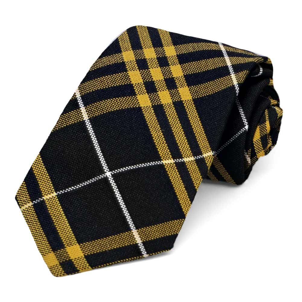 Go back to school in this black and gold plaid tie. You can't go wrong with this pattern. It's classic and designed to match your school colors. This plaid pattern comes in many different styles, including bow ties, pre-tied ties and crossover ties, so you can easily mix and match among a group of students.