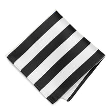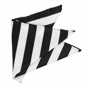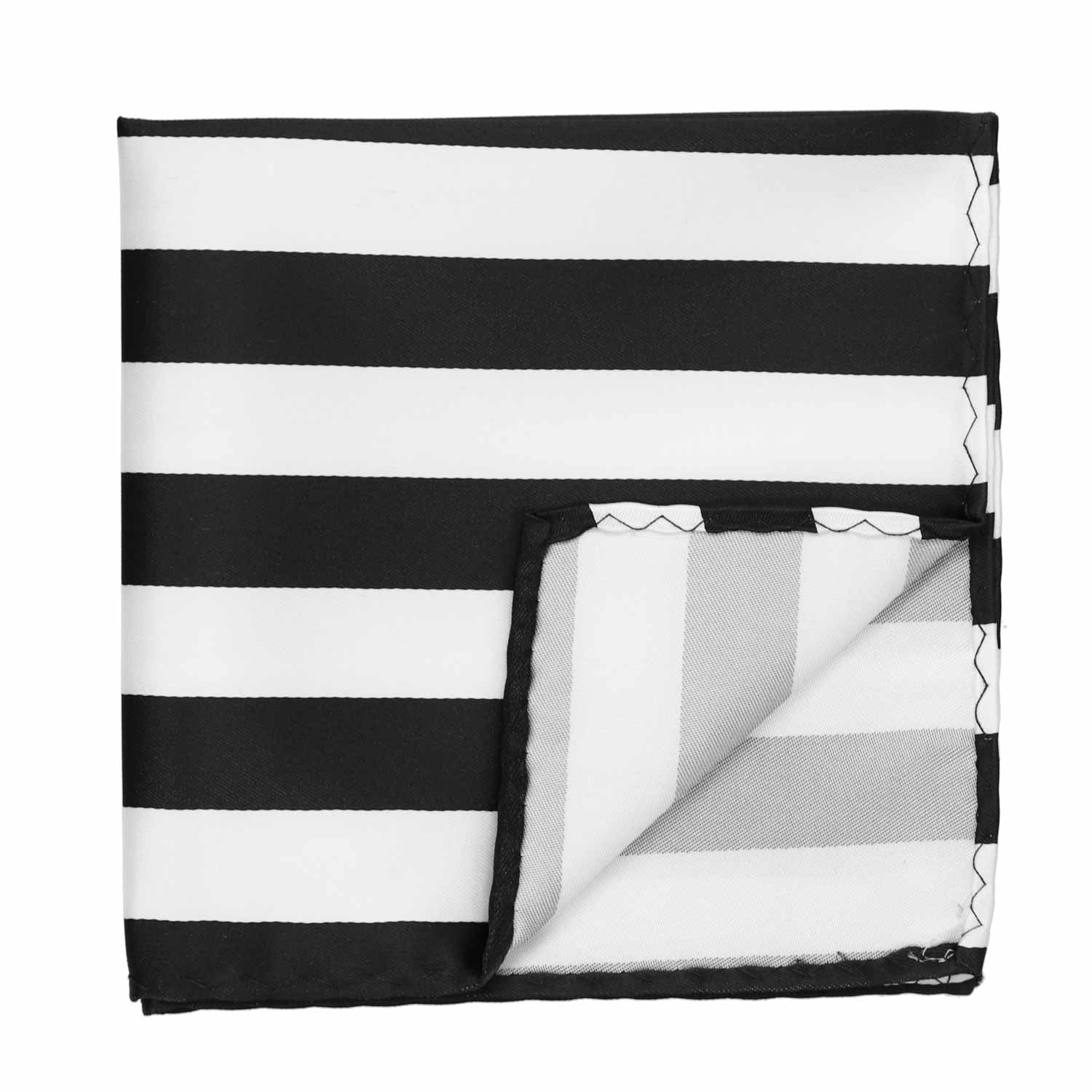 This black and white striped pocket square measures a large, 12-inches by 12-inches to suit a wide variety of folds. The tightly woven material creates a smooth finish for a sharp look. Matches our black and white striped ties and bow ties.