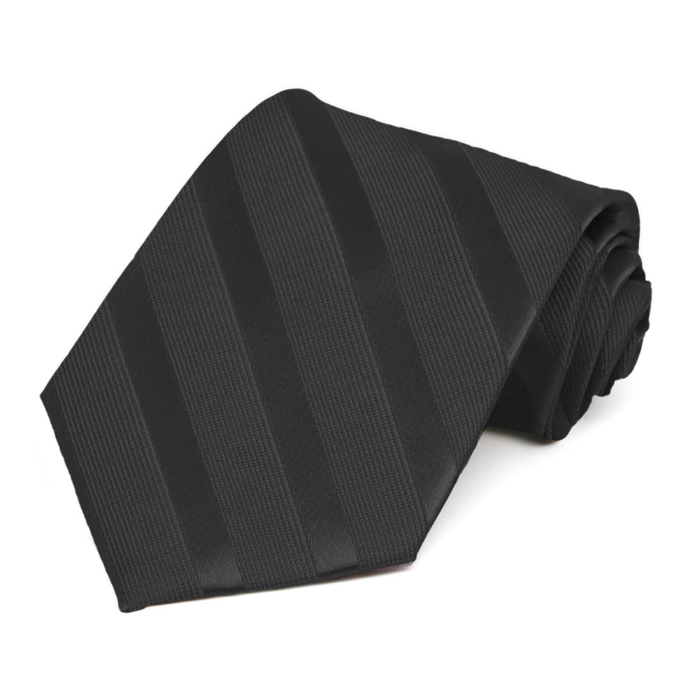 A black extra long tie is a wardrobe staple. This tie elevates a classic with its alternating tone-on-tone stripes. (The stripes are a textured ribbing and solid sheen.) The look is sophisticated for your most formal events and more somber occasions, as well. You can add dimension to your overall look with the matching pocket square (sold separately). Get ready to reach for this timeless tie again and again.