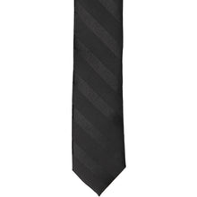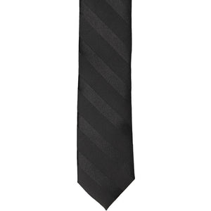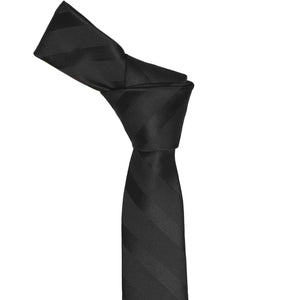 For the modern young businessman, this skinny striped necktie is a must. The tie is trendy and cool in a 2-inch width. The sleek, tone-on-tone black stripes feature sharp satin and ribbed textures. The solid color style means you can wear this tie with a wide range of formalwear. From that big meeting to drinks after work, this tie has you covered.