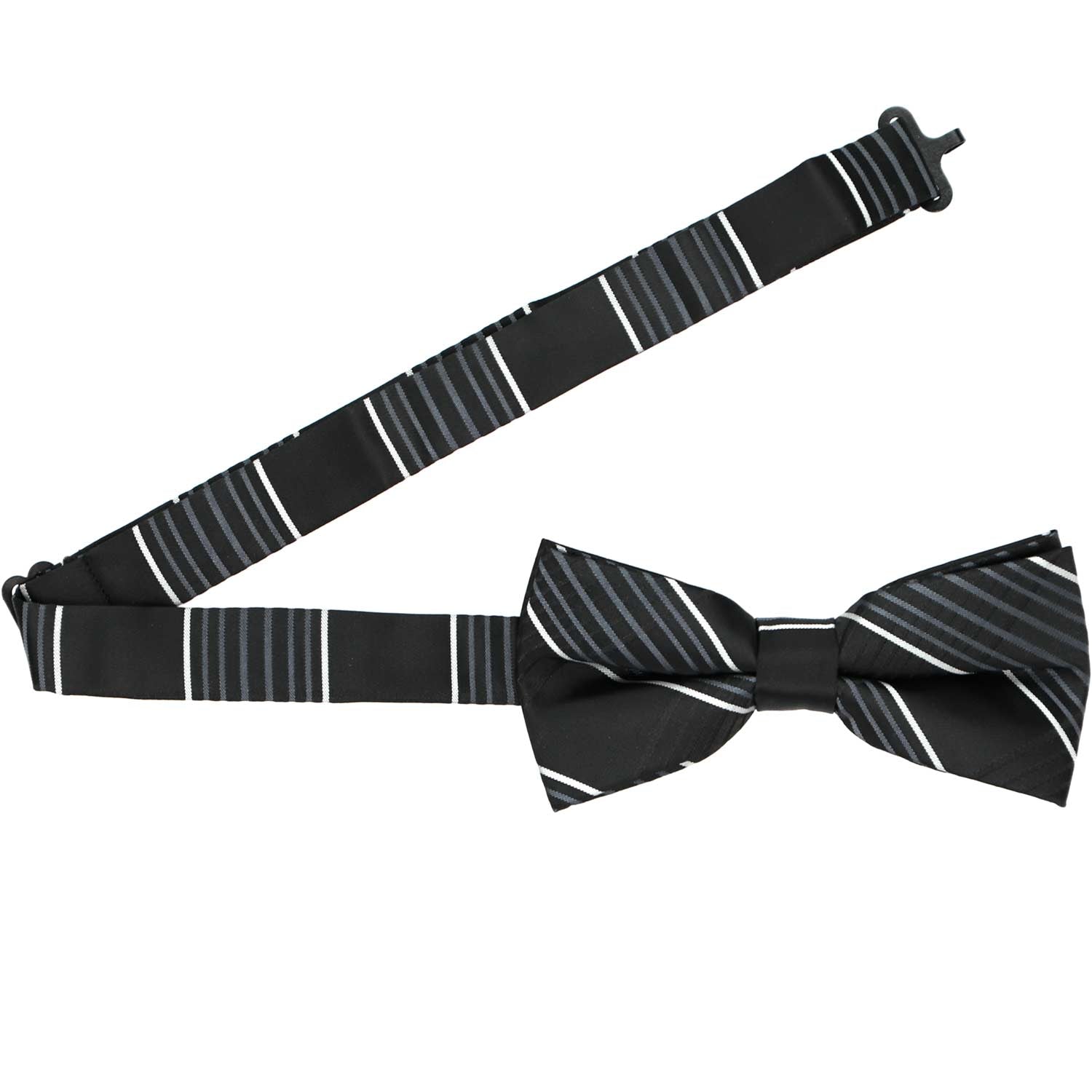 This pre-tied bow tie fits most teens and adults, thanks to an adjustable band that goes from 12 to 21-inches. The average-sized bow is perfect for a timeless, classic look. Look closely; the durable, textured polyester is built for repeat wear.