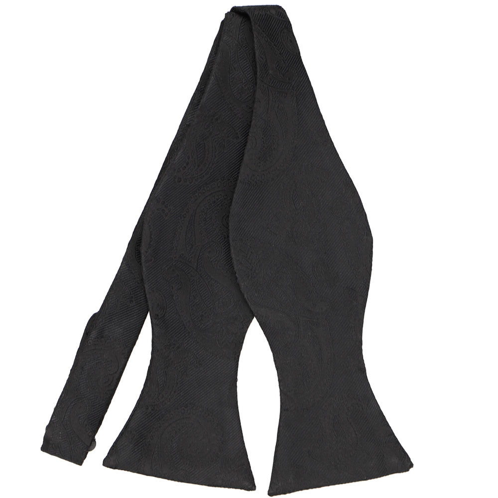 The height of sophistication meets traditional paisley for a look of timeless elegance. Black on black details make this self-tie bow tie an obvious choice for formal events and somber occasions. Look your absolute best when you wear it with a black suit.