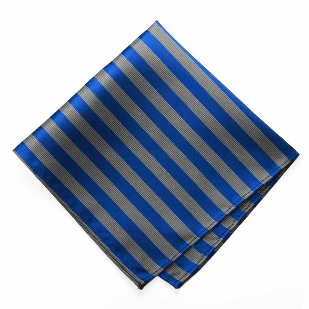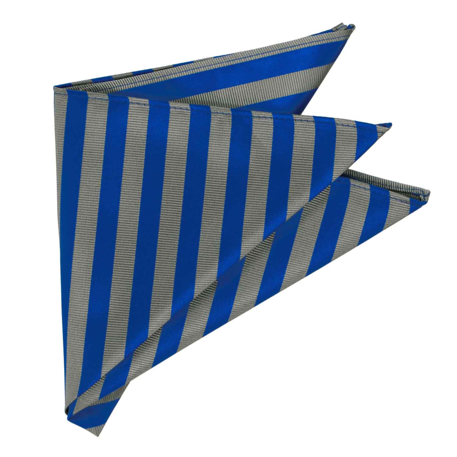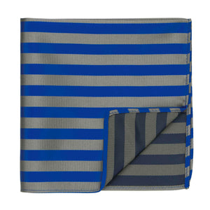Let's discuss details. This is a larger pocket square at 12-inches by 12-inches, so it's suitable for making all the most popular folds. The material is durable polyester with a smooth or textured feel, depending on the stripe.