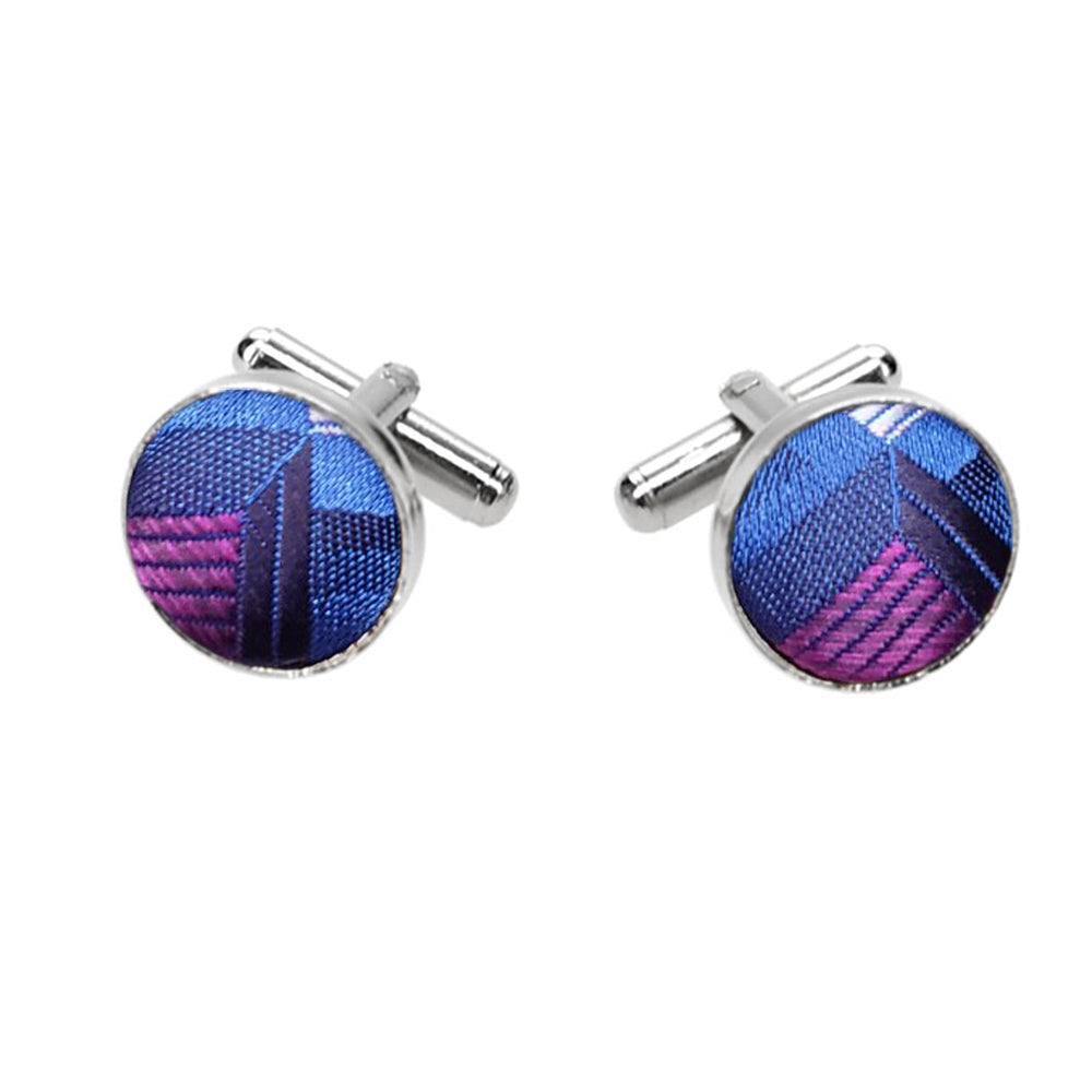 Here's a fun pair of cufflinks to add to your dressy attire. They feature an attention-getting blue and purple fabric plaid pattern. These will look great with a navy blue suit, with or without a necktie. We kept the backing traditional in a silver-tone.