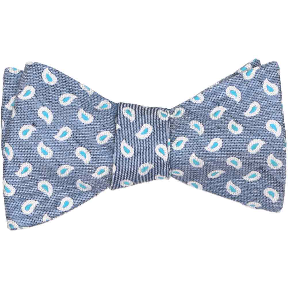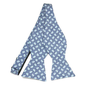 You'll look your Sunday best when you sport this blue paisley bow tie with your favorite navy blue suit. Or, try the same combination for your wedding day. The tone-on-tone pattern is simple to match and will always look timeless. Purchase a coordinating solid color pocket square to top off your look.