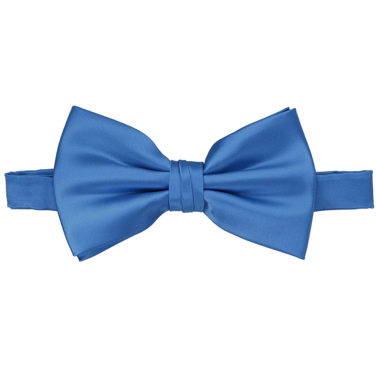 Stand out on your wedding day (or any day) in this premium blue bow tie. The solid color style is easy to match to suits and casual attire, alike. You'll be wearing this one for years to come thanks to its versatility. Our customers are wearing these bow ties with navy blue and gray suits. Make it a set and add the matching blue pocket square, sold separately. Check out the gorgeous lapel pins, too! They are a great alternative to the traditional boutonnière.