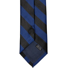 Now here's a suave tie. We made this elegant blue velvet and black striped tie in a classic collegiate style. While you may not be wearing this tie to show off your school colors, it is going to look timeless wherever you take it (the office, a formal event, etc.). The color combo is perfect for your favorite black suit. Complete your dapper look with a blue velvet or black premium pocket square (sold separately).