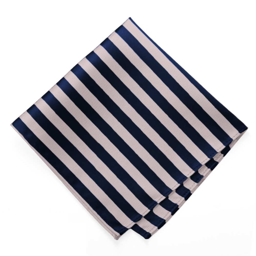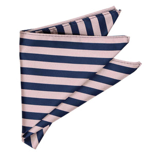 Blush Pink and Navy Blue Formal Striped Pocket Square