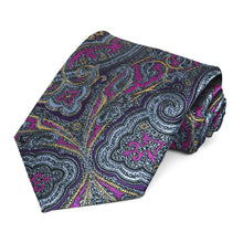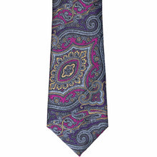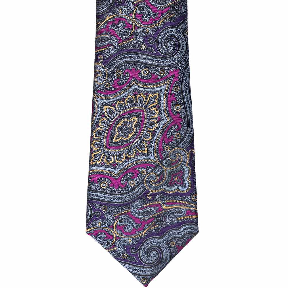Get ready to be captivated by this paisley tie. It will make your outfit stand out with its intricate purple, violet, light orange and blue/gray design. All those colors make it easy to match almost any suit or shirt color. If this bold paisley pattern isn’t enough to catch their attention, add a matching pocket square (available for purchase separately).