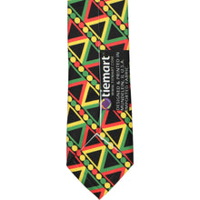 Red white and navy blue stars and stripes necktie rolled to show pattern up close