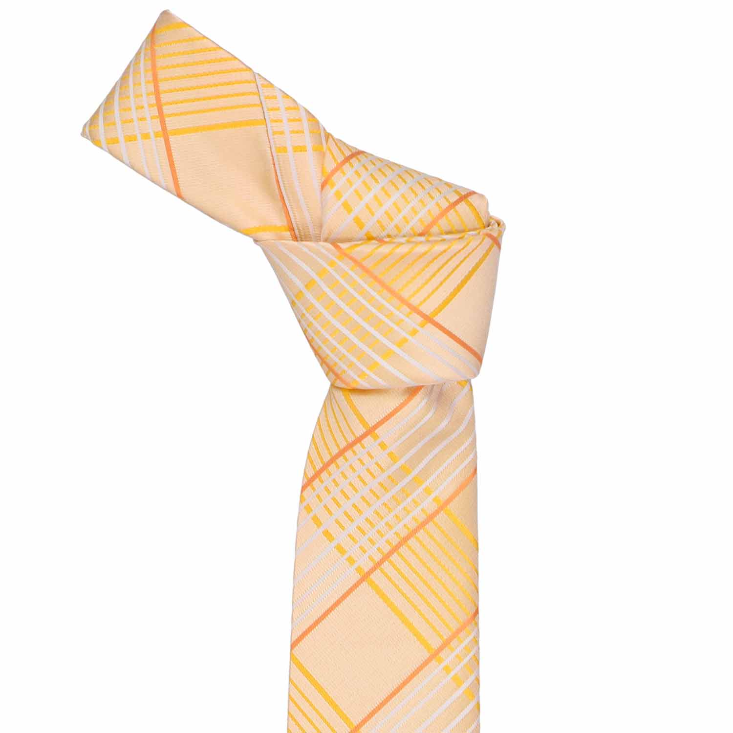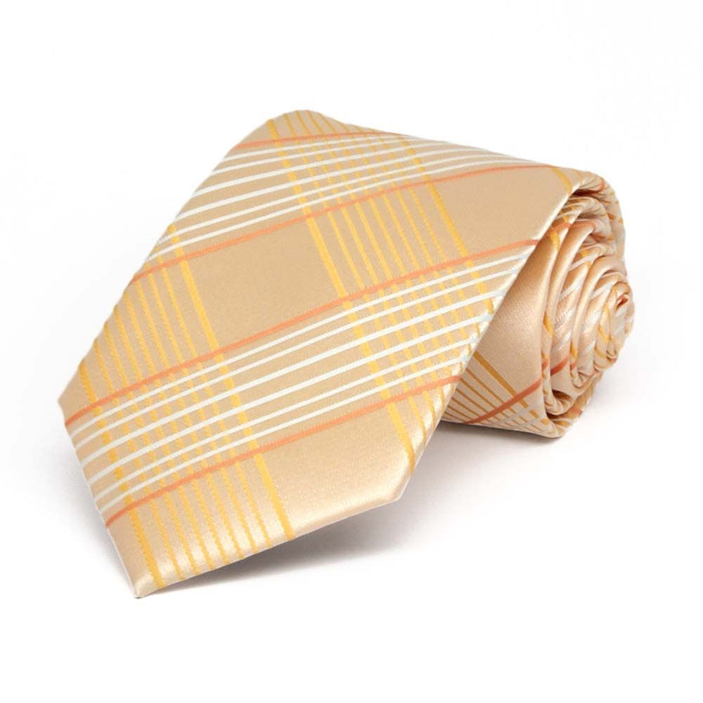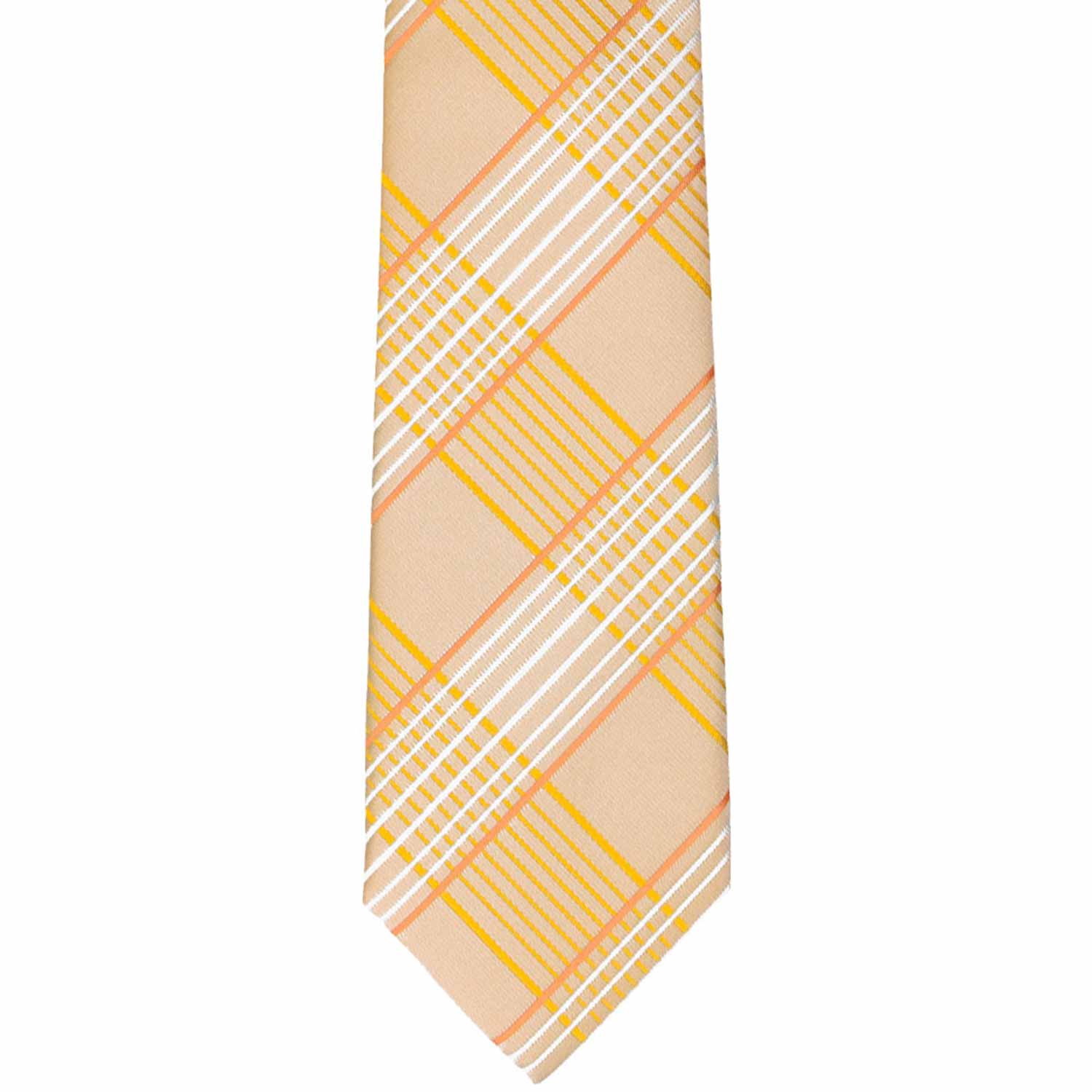 Sunny days call for bright colors, and this boys' light orange plaid tie is ready for warm-weather occasions! The large plaid pattern is bold yet balanced, with subtle hints of yellow and white that make it perfect for Easter, weddings, or family photos. Pair it with a crisp white shirt, tan slacks, and suspenders for a beach wedding, keep it casual with khakis, or dress it up with a navy suit. No matter how he wears it, this tie brings cheerful style and endless versatility!