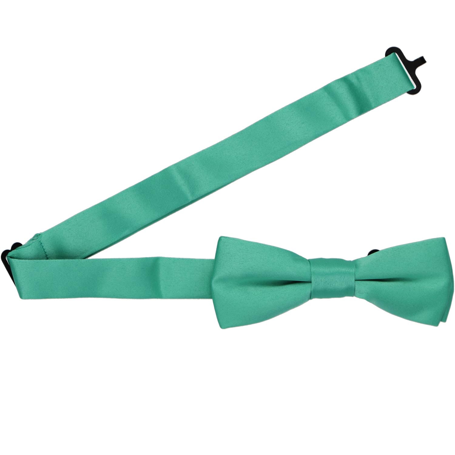 A charming boys' aqua bow tie sized just right for your little guy. The bow tie is pre-tied and features a safe and easy-to-use, hook-and-eye closure. Measuring 4-inches across and 1.5-inches tall, this bow tie is sized for most boys from baby to 10-years old.