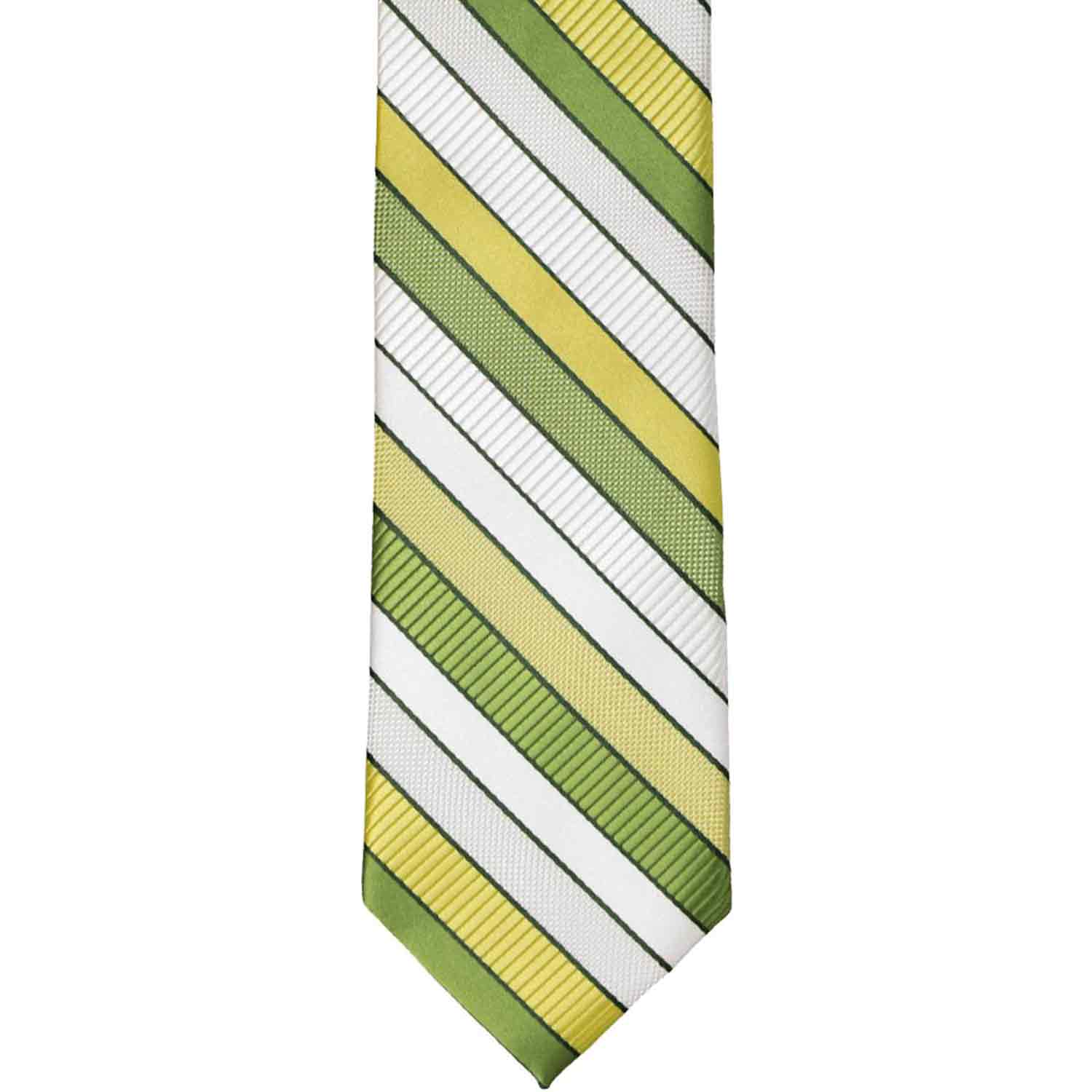 Add a splash of fresh color to his spring wardrobe with this boys' necktie in a vibrant asparagus green stripe pattern! The classic stripes and earthy tones make it perfect for Easter, spring events, or any special occasion. Pair it with a tan suit for a polished look or khakis for a more relaxed, stylish outfit. Want to complete the ensemble? A matching pocket square is sold separately for those extra-special moments!