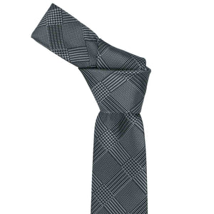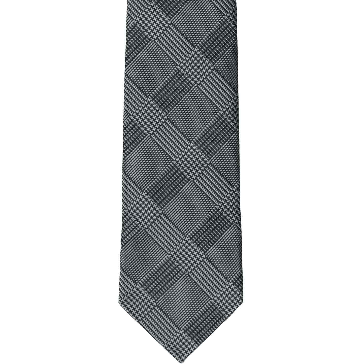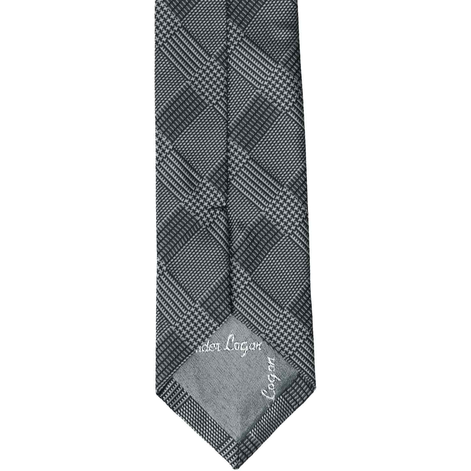 Get him ready for any formal occasion with this timeless boys' tie. The classic Glen plaid pattern in black and dark gray adds a refined touch to his outfit. Pair it with a black suit for a polished, respectful look that suits both solemn occasions and more formal family events. With its versatile and classic style, this tie is a wardrobe staple he can rely on.