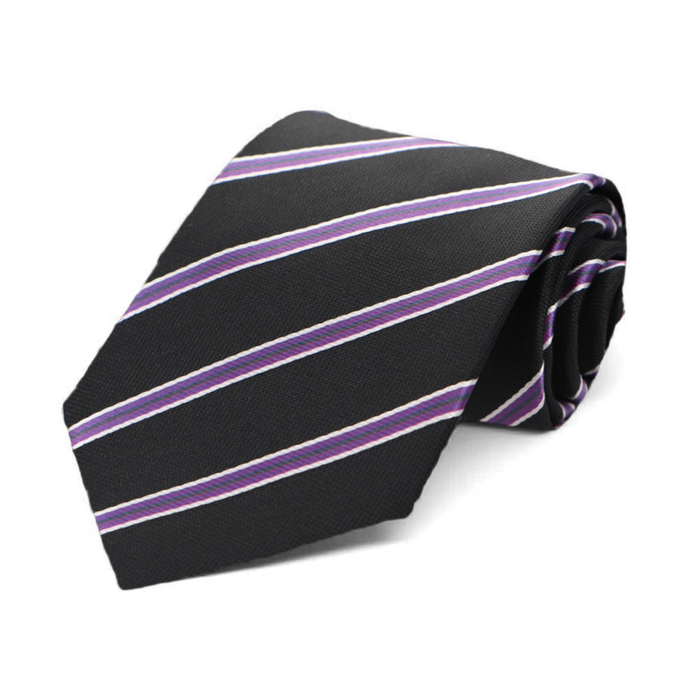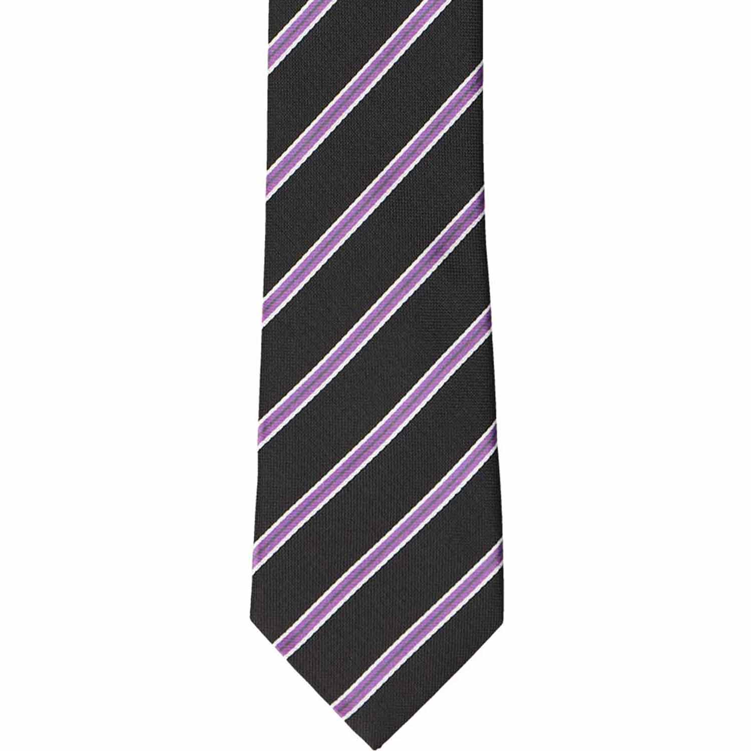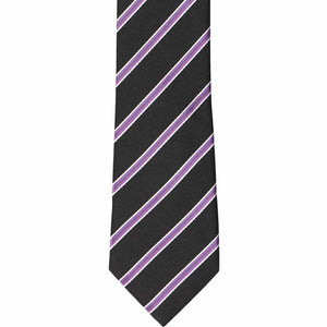 Make picture day extra special with this sharp-looking boy’s tie! The classic black background keeps the bold purple pencil stripes looking sleek and easy to match—just like a solid color tie. Whether he's dressing up solo or matching with Dad for a coordinated father-son look, this tie pairs effortlessly with black slacks or a suit. A stylish choice for school photos, special occasions, or just because!