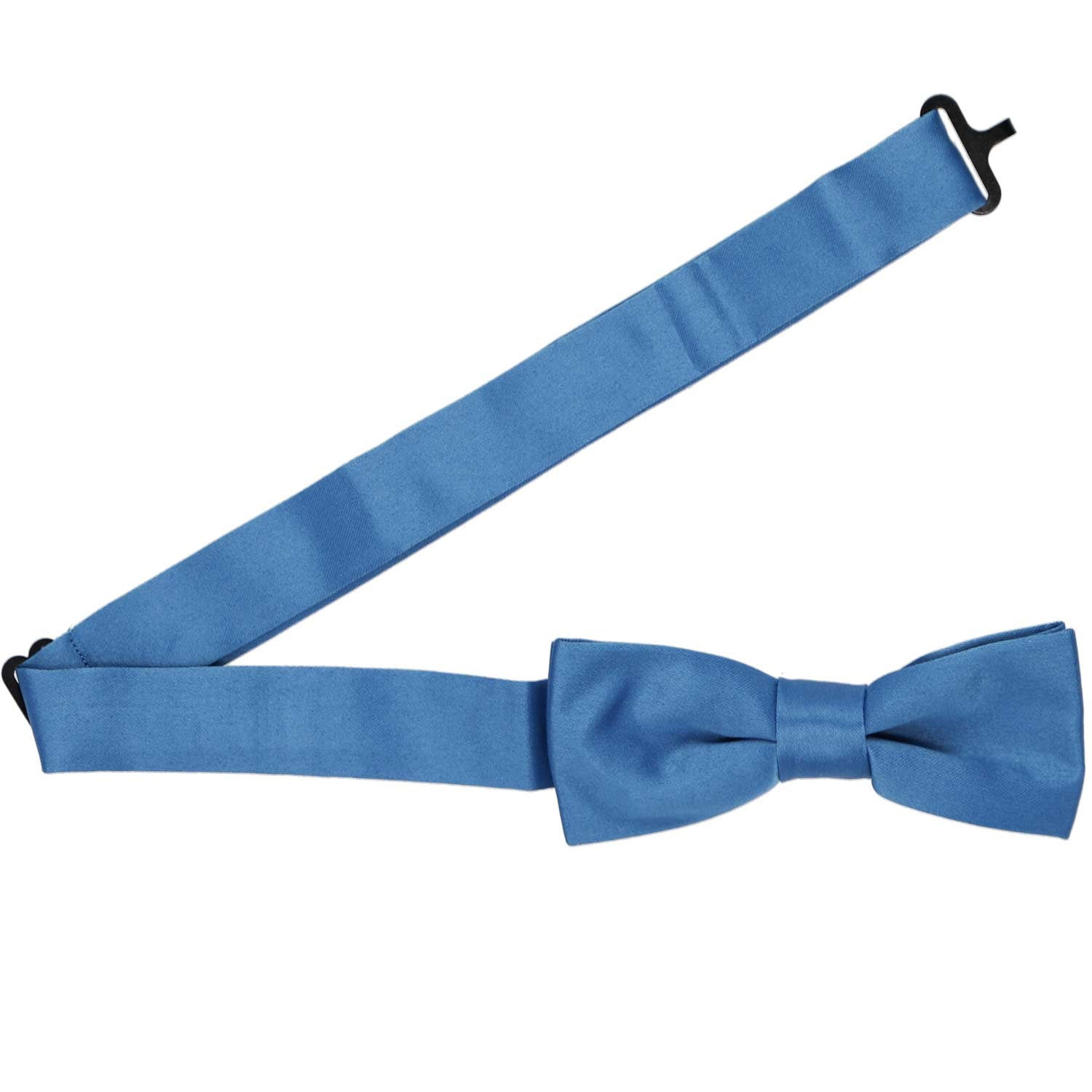 A charming boys' blue bow tie sized just right for your little guy. The bow tie is pre-tied and features a safe and easy-to-use, hook-and-eye closure. Measuring 4-inches across and 1.5-inches tall, this bow tie is sized for most boys from baby to 10-years old.