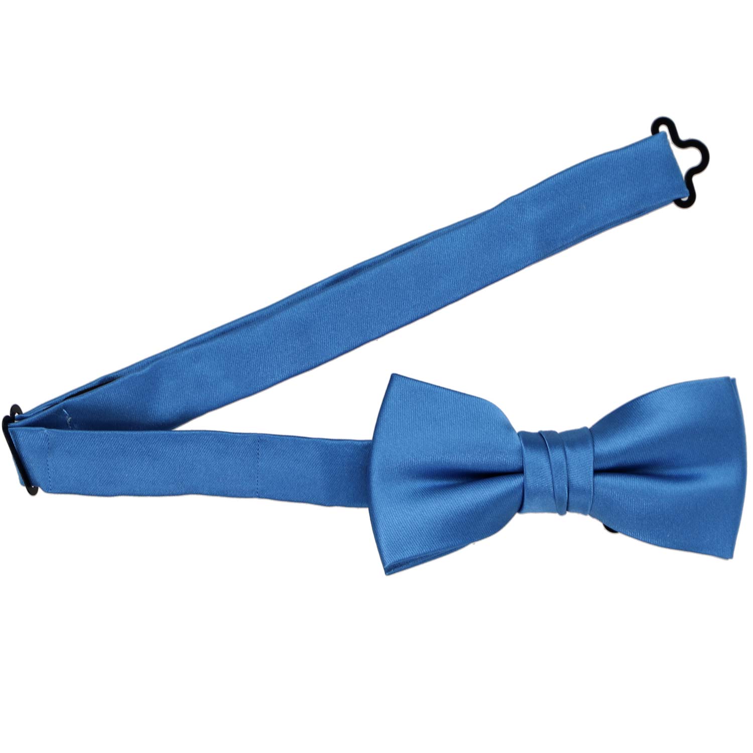 This boys' bow tie is a no-brainer—classic, versatile, and effortlessly stylish! The standard blue shade pairs perfectly with everything from a sharp navy suit to a laid-back checked shirt and khakis. Whether you're dressing him up or keeping it casual, this bow tie has you covered. Plus, it’s available in a variety of men's styles, lengths, and widths. And don’t forget to check out the matching accessories!