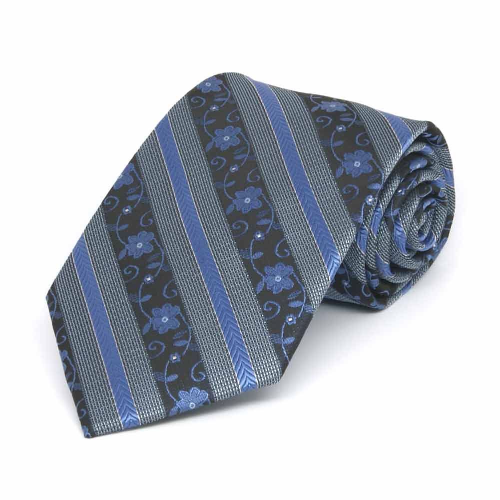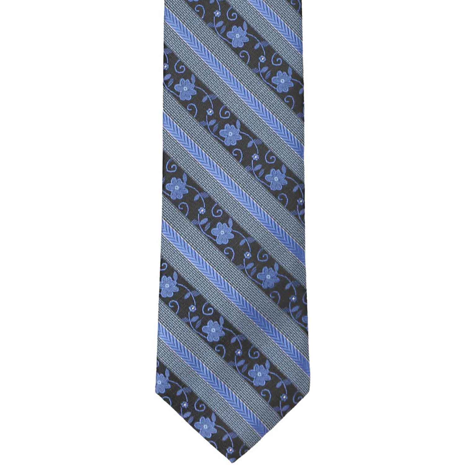 Not usually into floral ties? This boys' tie might just change your mind! Blending bold stripes with subtle florals, it offers a fresh take on classic patterns. The vibrant blue color is as easy to pair as a solid tie but adds a fun, eye-catching twist. Perfect for school events, weddings, or any special occasion, it looks especially sharp with navy or gray suits—but it’s versatile enough to complement other colors too!