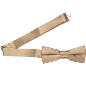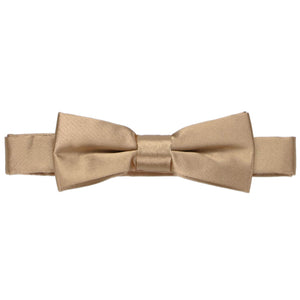 A charming boys' bronze bow tie sized just right for your little guy. The bow tie is pre-tied and features a safe and easy-to-use hook-and-eye closure. Measuring 4-inches across and 1.5-inches tall, this bow tie is sized for most boys from baby to 10-years old.