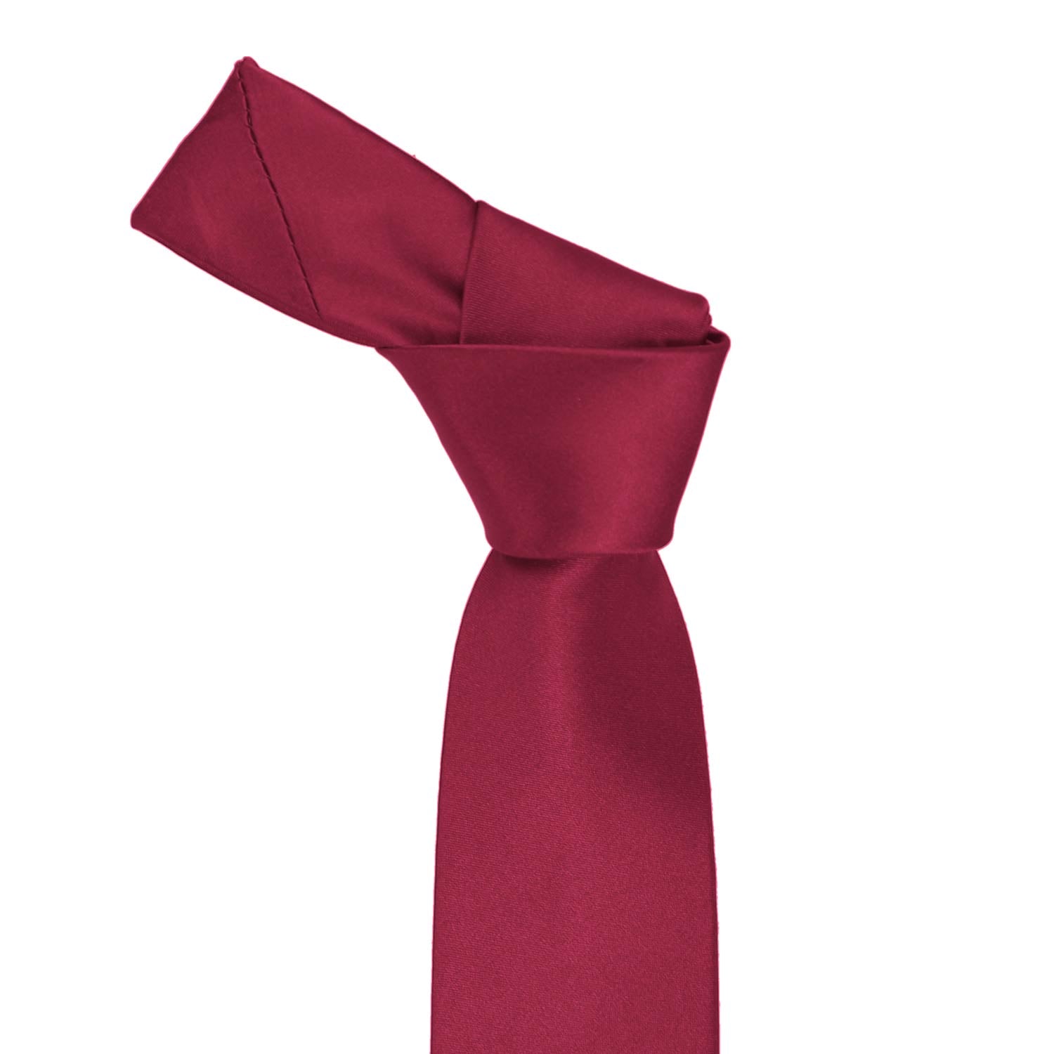 You'll find countless reasons for him to wear this handsome claret boys' necktie! This versatile dark red shade is slightly lighter than traditional burgundy and is perfect for matching school and sports team colors. It's also an excellent choice for cold weather wedding attire and all special events throughout the year. The rich color pairs beautifully with any suit—try it with navy, gray, or classic black apparel. He'll look sharp and feel proud when he ties the tie himself, creating a sophisticated, grown-up look.