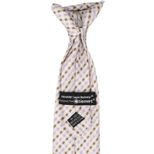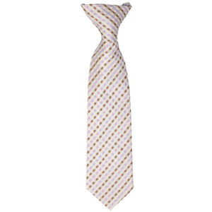 This boys' clip-on tie is perfect for all those spring events, like Easter, a family wedding, or his First Communion. The charming cream and brown gingham pattern is accented with subtle hints of lavender. For a light and fresh look, pair it with tan, khaki, or navy blue. Available in men's sizes as well, it’s easy to create a matching father-son look for those special occasions.