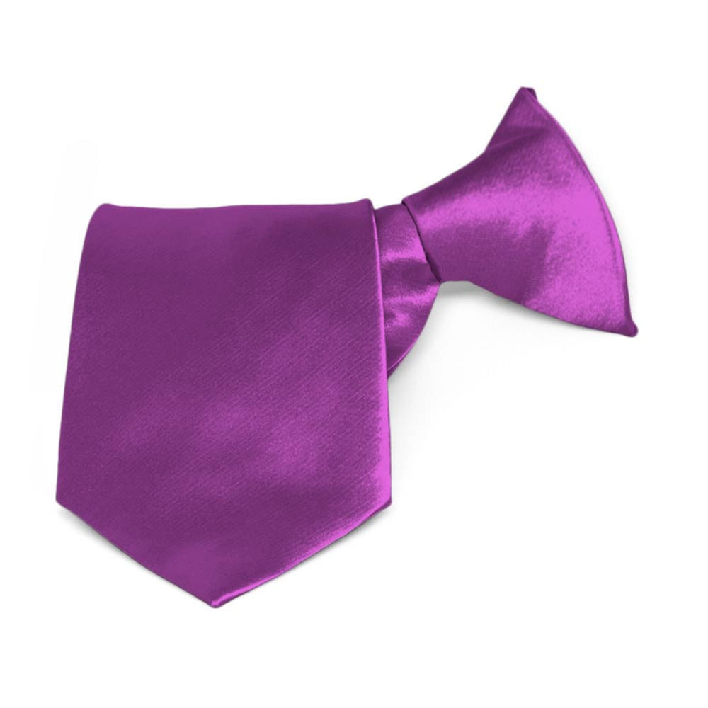 This boys' dark orchid clip-on tie is easy to use and sized just right for your little guy. Available in an 8-inch, length, these pre-tied ties are sized to fit most boys up to 2-years old. The clip on the tie simply attaches to the top of the boy's shirt, without any material around the child's neck.