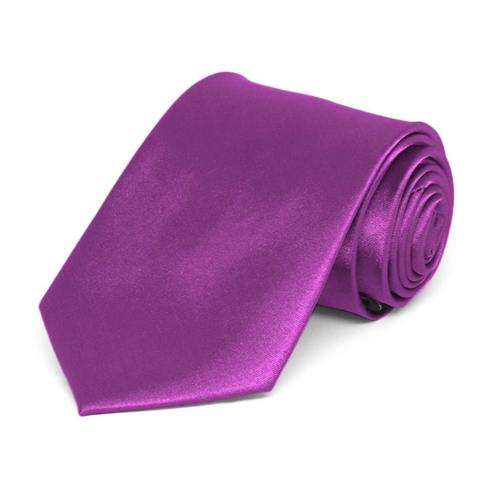 Why settle for any ordinary tie when he can be wearing this bold dark orchid boys' necktie? This deep, vibrant purple will make his day special, whether he's heading to a holiday gathering, school performance, or a formal event. If he doesn't wear a lot of purples, don't worry—this tie looks sleek and handsome with just about any attire, from a classic black suit to a navy blue sweater and slacks combo. He'll look incredibly polished and feel completely grown-up when he ties the tie himself.
